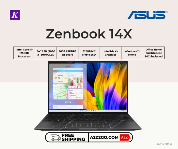 ASUS Zenbook 14X UX5401ZA-KN130WS Intel Core i5-12500H 512GB M.2 NVMe SSD Intel Iris Xe Graphics Windows 11 Home