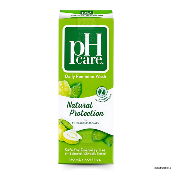 pH Care Natural Protection Feminine Wash 150 mL is a daily intimate cleanser formulated to maintain hygiene and freshness. Enriched with natural ingredients like guava leaf extract, known for its antibacterial properties, it helps protect against odor, itching, and irritation. The product is pH-balanced at 5, ensuring gentle cleansing without disrupting the natural flora. It's also hypoallergenic, paraben-free, and clinically tested for safe everyday use.